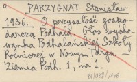 PARZYGNAT Stanisław 1936 O przyszłość gospodarczą Podhala. Głos wychowanka Podhalańskiej Szkoły Rolniczej w Nowym Targu.