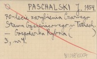 PASCHALSKI J. 1954 70-lecie zarybienia Czarnego Stawu Gąsienicowego w Tatrach.