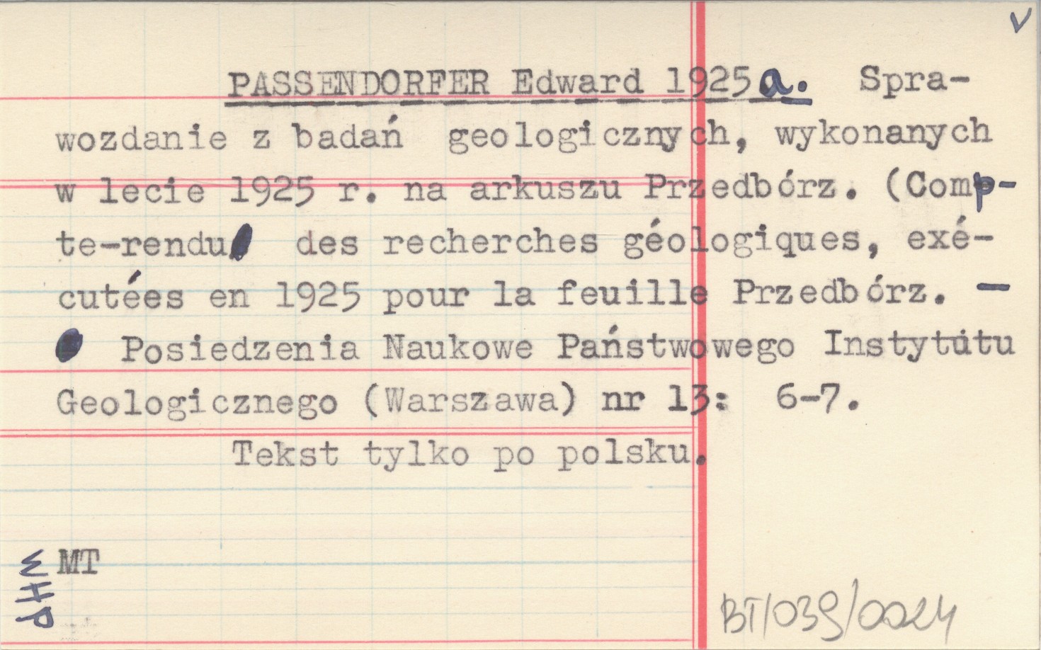 PASSENDORFER Edward 1925 a Sprawozdanie z badań geologicznych, wykonanych w lecie 1925 r. na arkuszu Przedbórz. (Compte-rendu des recherches géologiques, exécutées en 1925 pour la feuille Przedbórz.