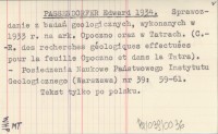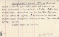 PASSENDORFER Edward 1935 a Sprawozdanie z badań geologicznych wykonanych na ark. Opoczno i w Tatrach w r. 1934. (C.-R. des recherches, exécutées sur la feuille Opoczno, et au Tatra en 1934).