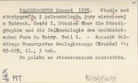 PASSENDORFER Edward 1930... Studjum stratygraficzne i paleontologiczne nad kredą serji wierchowej w Tatrach.