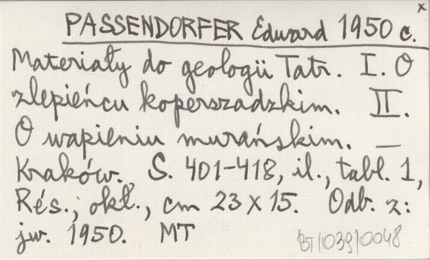 PASSENDORFER Edward 1950 c Materiały do geologii Tatr. I. O zlepieńcu koperszadzkim. II. O wapieniu murańskim.