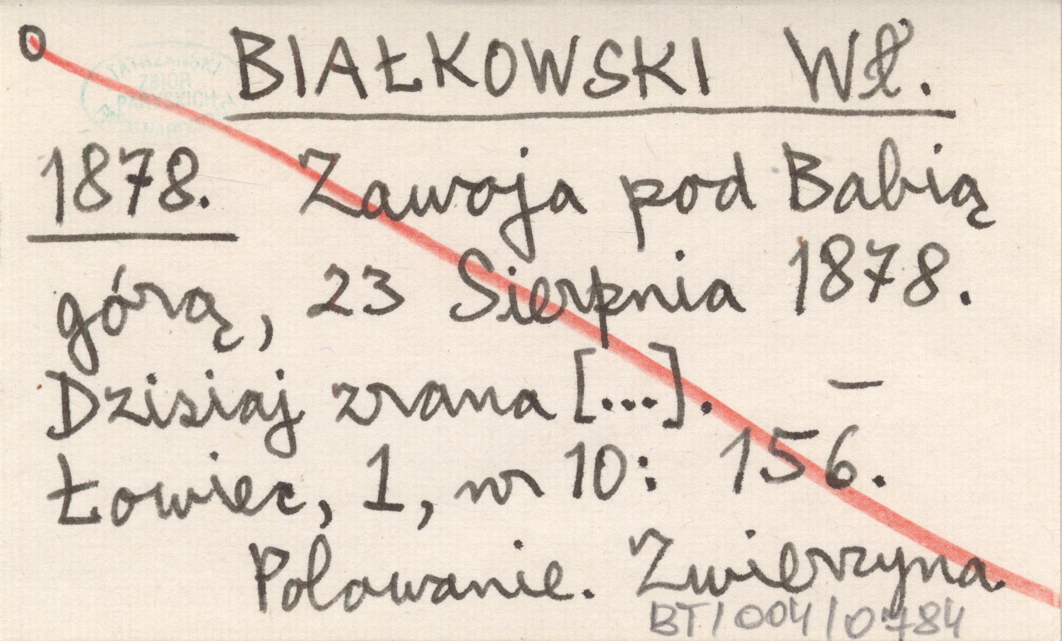 BIAŁKOWSKI Wł. 1878 Zawoja pod Babią górą, 23 Sierpnia 1878. Dzisiaj zrana [...].
