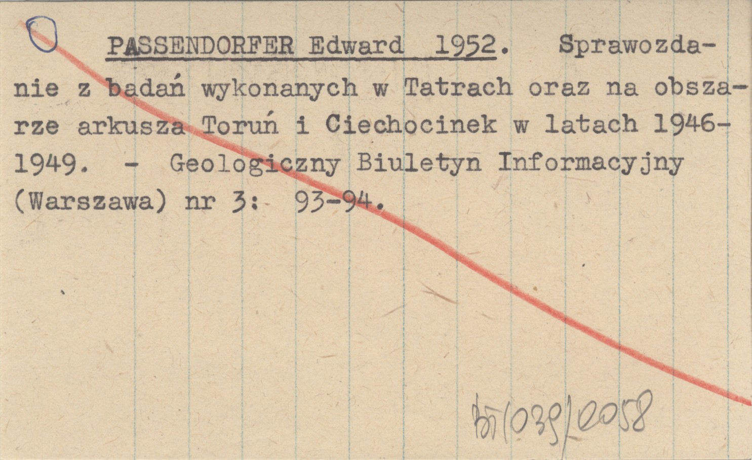 PASSENDORFER Edward 1952 Sprawozdanie z badań wykonanych w Tatrach oraz na obszarze arkusza Toruń i Ciechocinek w latach 1946-1949.