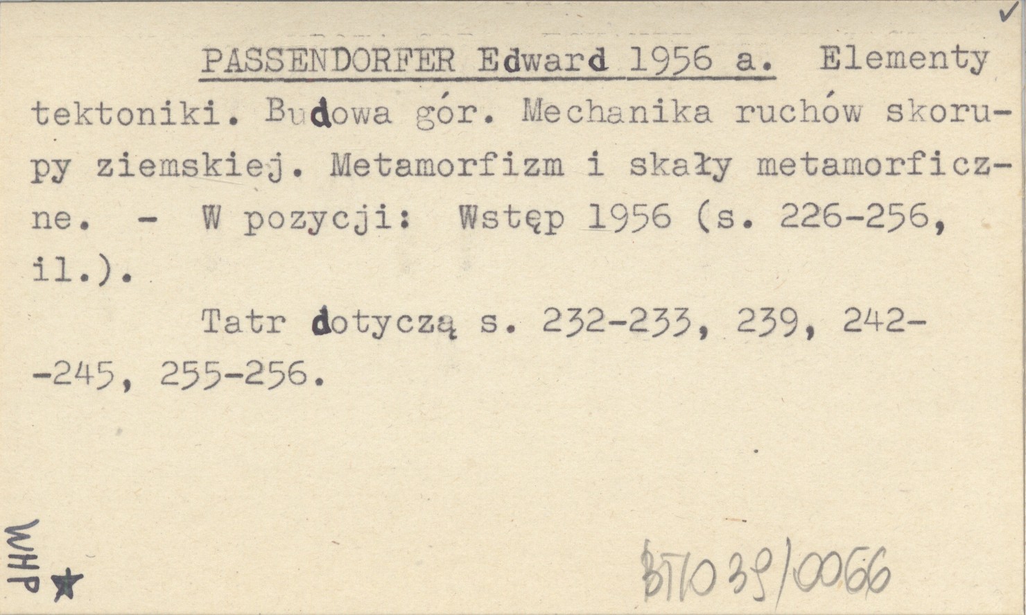 PASSENDORFER Edward 1956 a Elementy tektoniki. Budowa gór. Mechanika ruchów skorupy ziemskiej. Metamorfizm i skały metamorficzne.