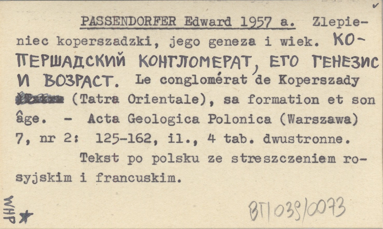 PASSENDORFER Edward 1957 a Zlepieniec koperszadzki, jego geneza i wiek. Koperšadskij konglomerat, ego genezis i vozrast. Le conglomérat de Koperszady (Tatra Orientale), sa formation et son age.