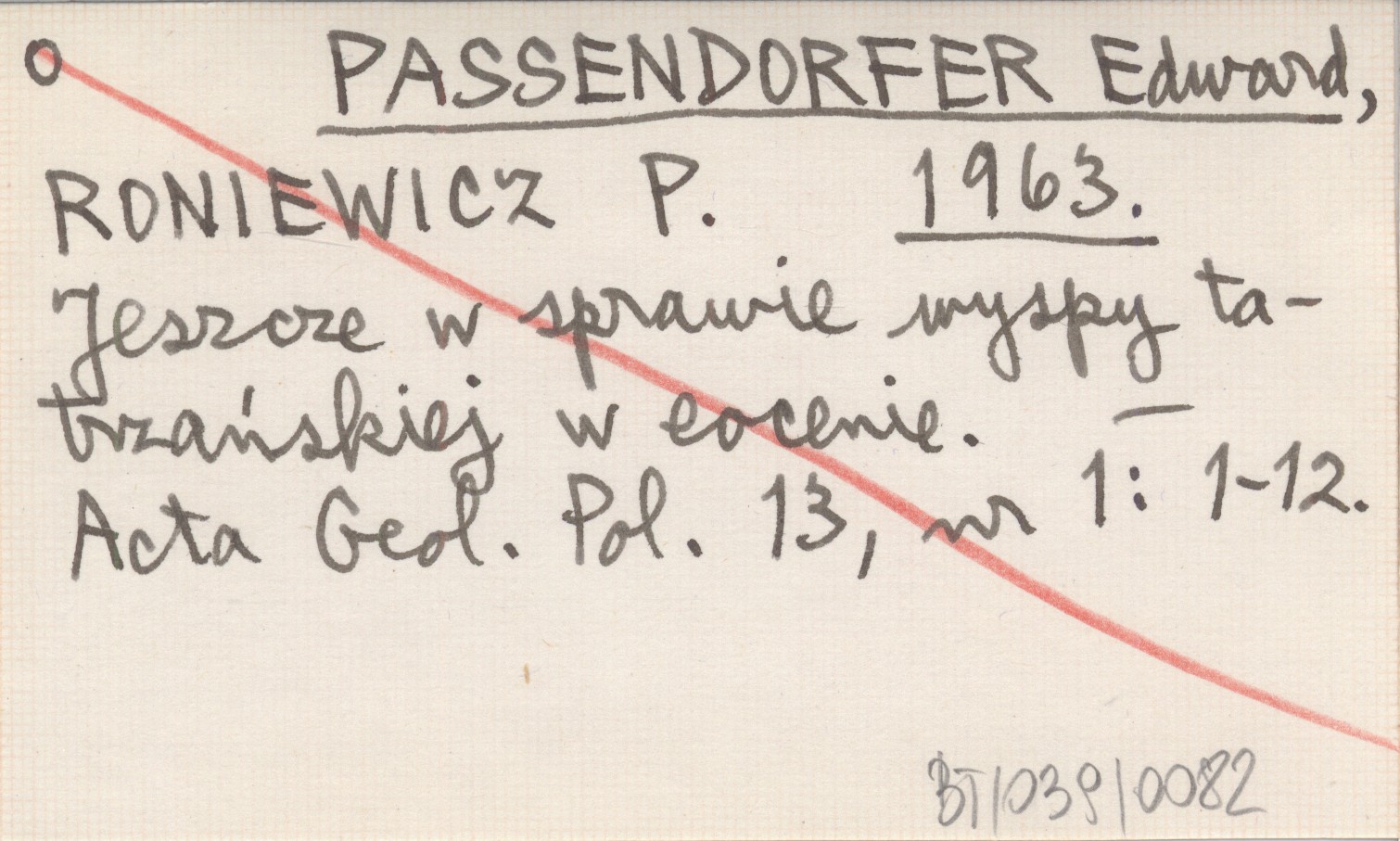 PASSENDORFER Edward RONIEWICZ, P. ; 1963 Jeszcze w sprawie wyspy tatrzańskiej w eocenie.