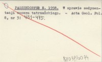 PASSENDORFER E. 1958 W sprawie sedymentacji eocenu tatrzańskiego.