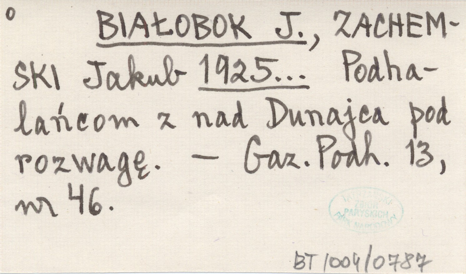 BIAŁOBOK J. ZACHEMSKI, Jakub. ; 1925... Podhalańcom z nad Dunajca pod rozwagę.