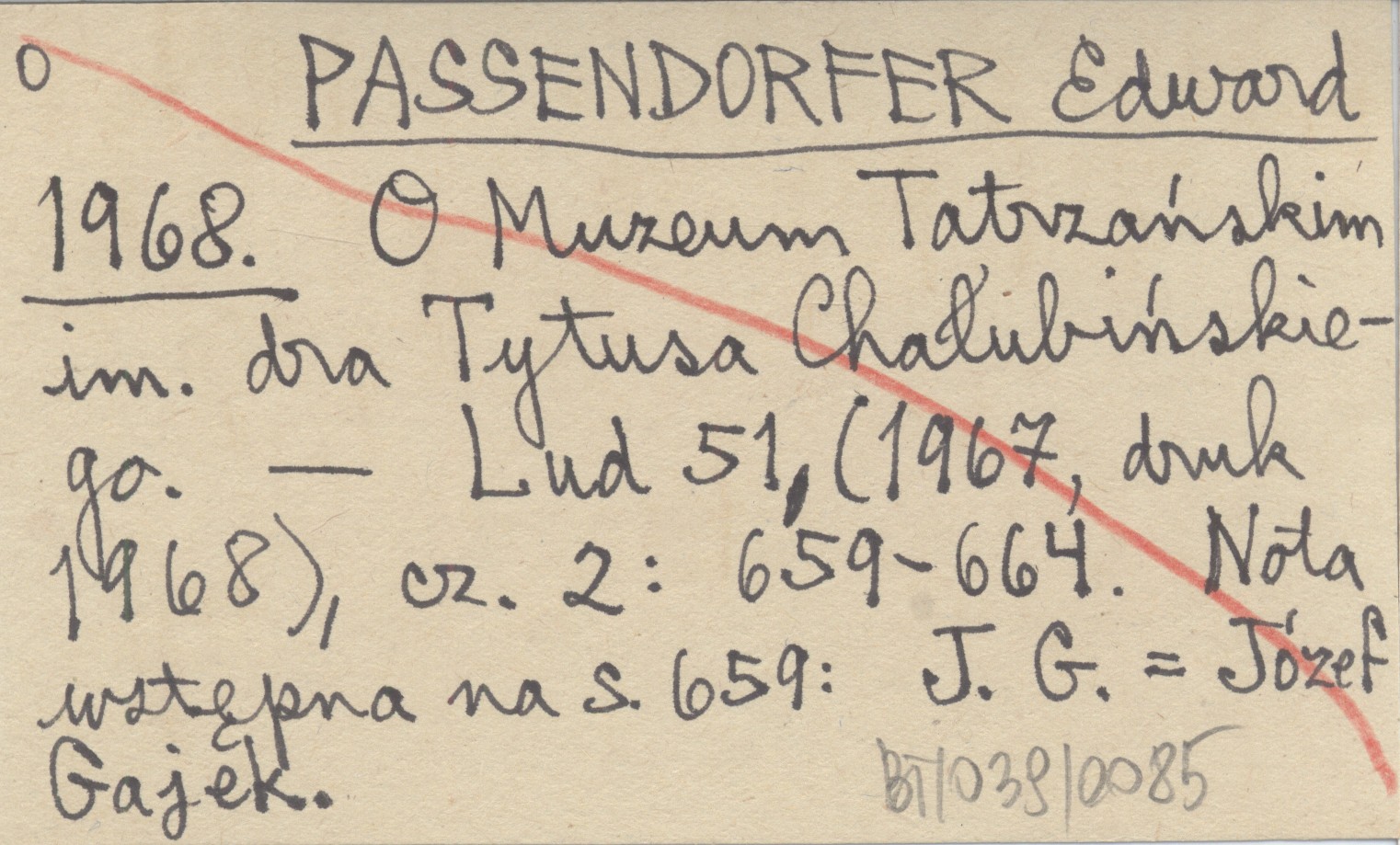 PASSENDORFER Edward 1968 O Muzeum Tatrzańskim im. dra Tytusa Chałubińskiego.
