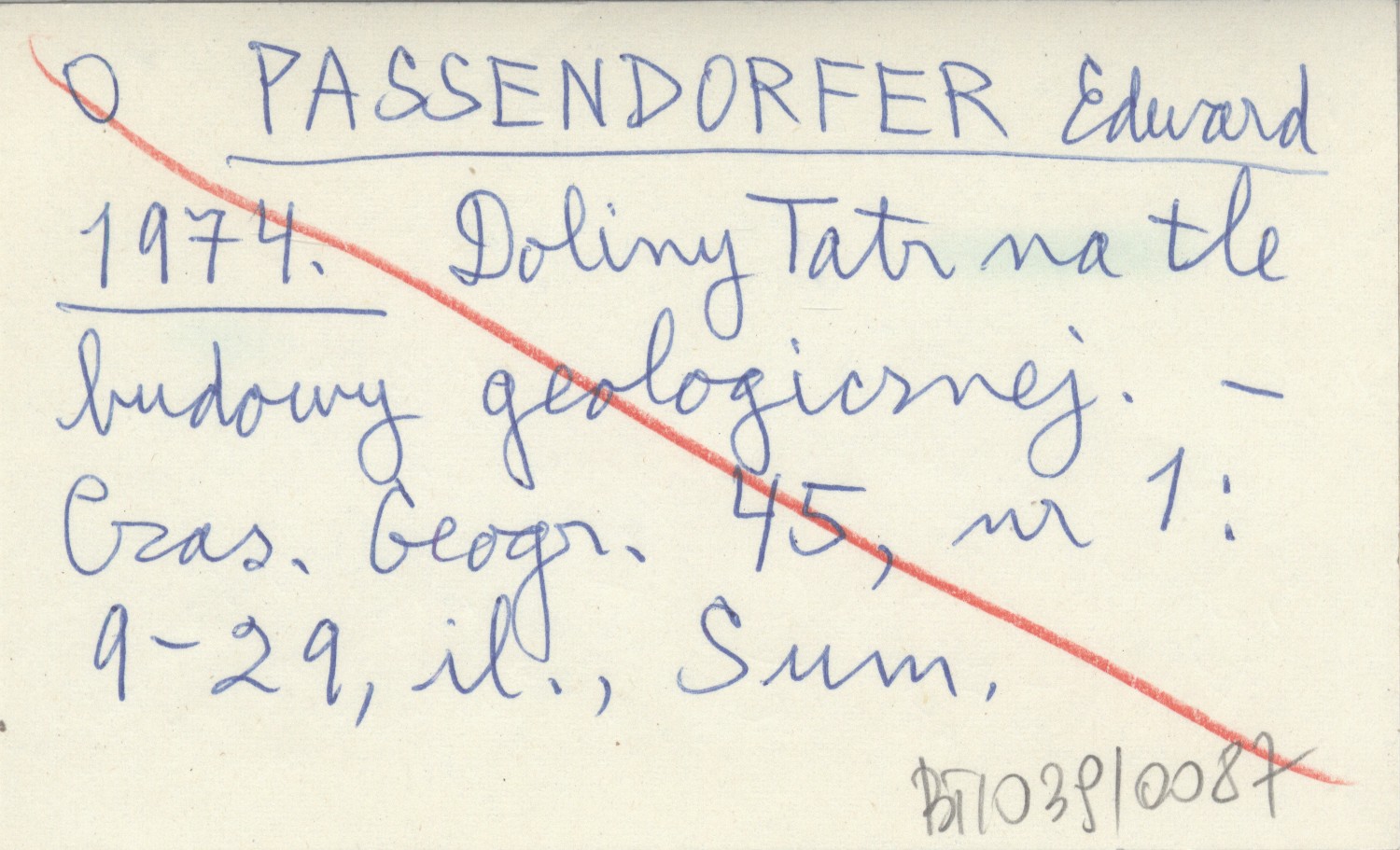 PASSENDORFER Edward 1974 Doliny Tatr na tle budowy geologicznej.