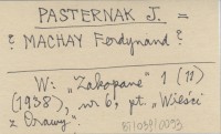 PASTERNAK J. MACHAY Ferdynand? Zakopane 1 (11) (1938), nr 6. Pt. "Wieści z Orawy".