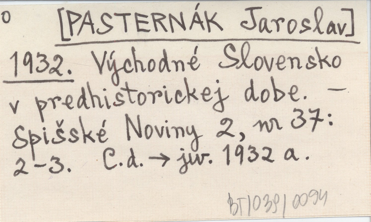 PASTERNÁK Jaroslav 1932 Východné Slovensko v predhistorickej dobe.