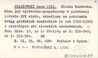 BIAŁKOWSKI Leon 1911 Ziemia Sandecka. Stan jej społeczno-gospodarczy w pierwszej połowie XVI wieku, skreślony na podstawie ksiąg grodzkich sandeckich (z lat 1516-1550) i niektórych akt ziemskich czchowskich.
