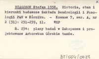BIAŁOBOK Stefan 1958 Historia, stan i kierunki badawcze Zakładu Dendrologii i Pomologii PAN w Kórniku.