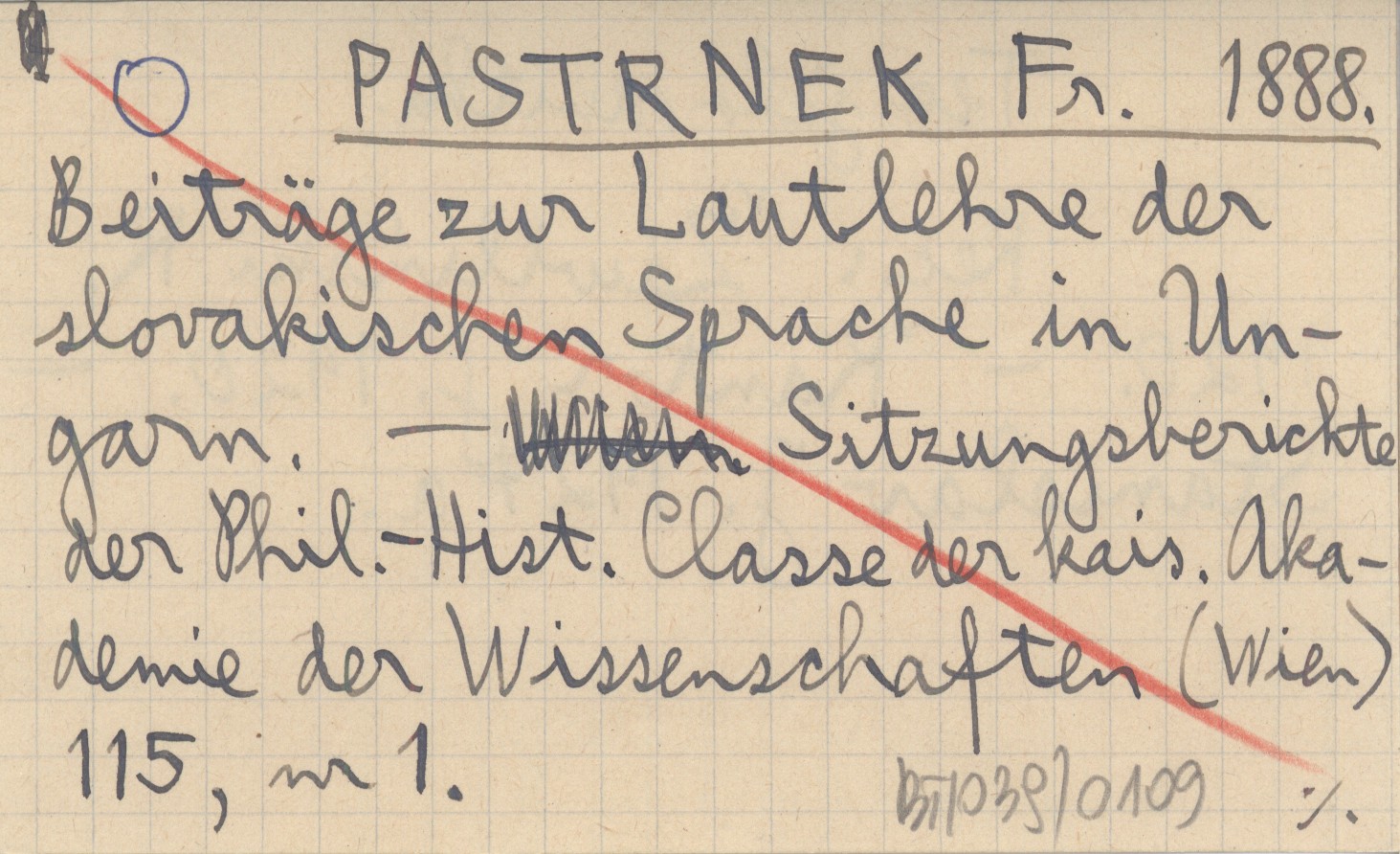 PASTRNEK Fr. 1888 Beiträge zur Lautlehre der slovakischen Sprache in Ungarn.