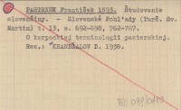 PASTRNEK František 1893 Študovanie slovenčiny.