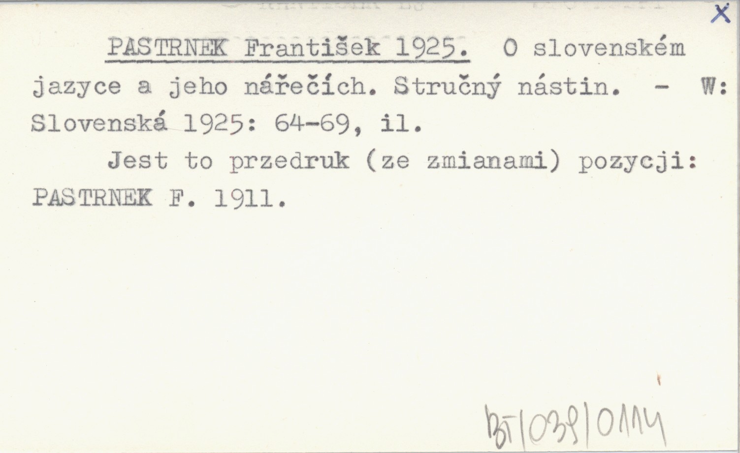PASTRNEK František 1925 O slovenském jazyce a jeho nářečích. Stručný nástin.