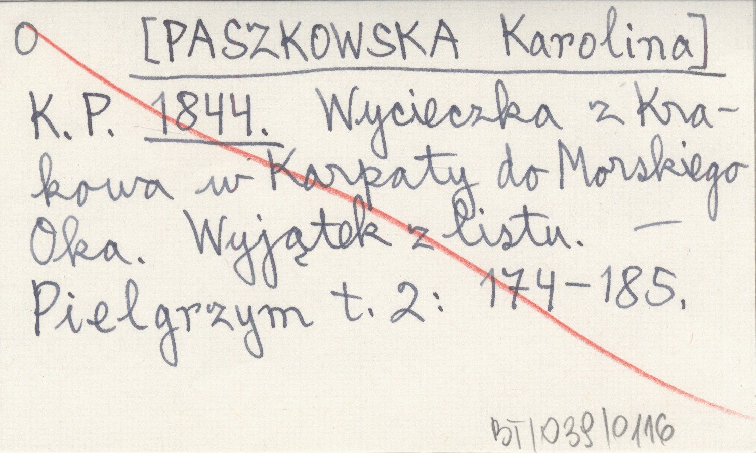 K. P. [PASZKOWSKA Karolina] 1844 Wycieczka z Krakowa w Karpaty do Morskiego Oka. Wyjątek z listu.