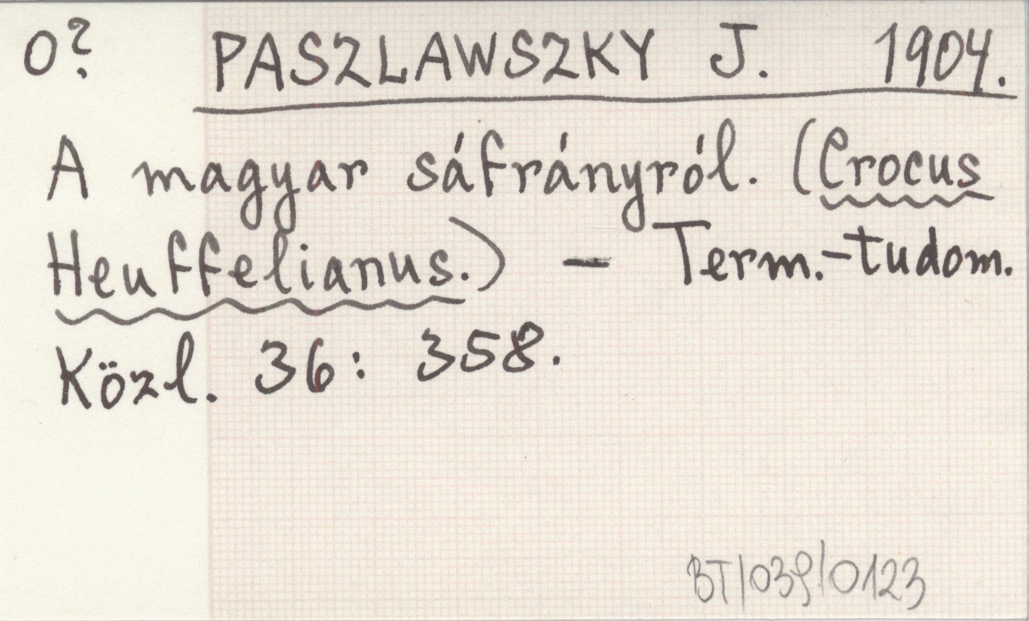 PASZLAWSZKY J. 1904 A magyar sáfrányról. (Crocus Heuffelianus).