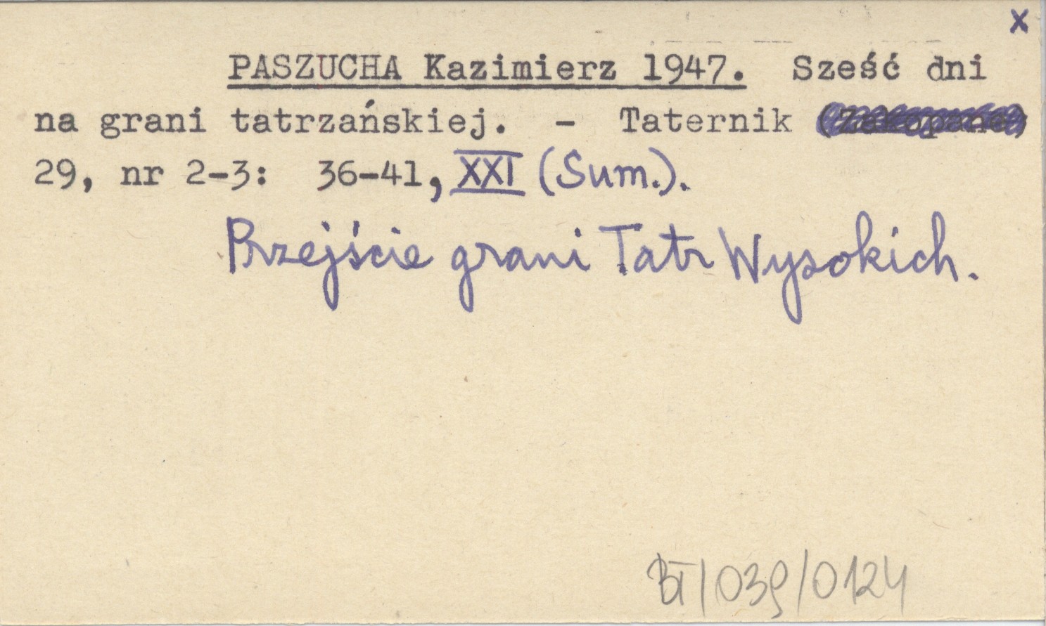 Taternik, 29, nr 2-3: 36-41, XXI (Sum.). Przejście grani Tatr Wysokich.