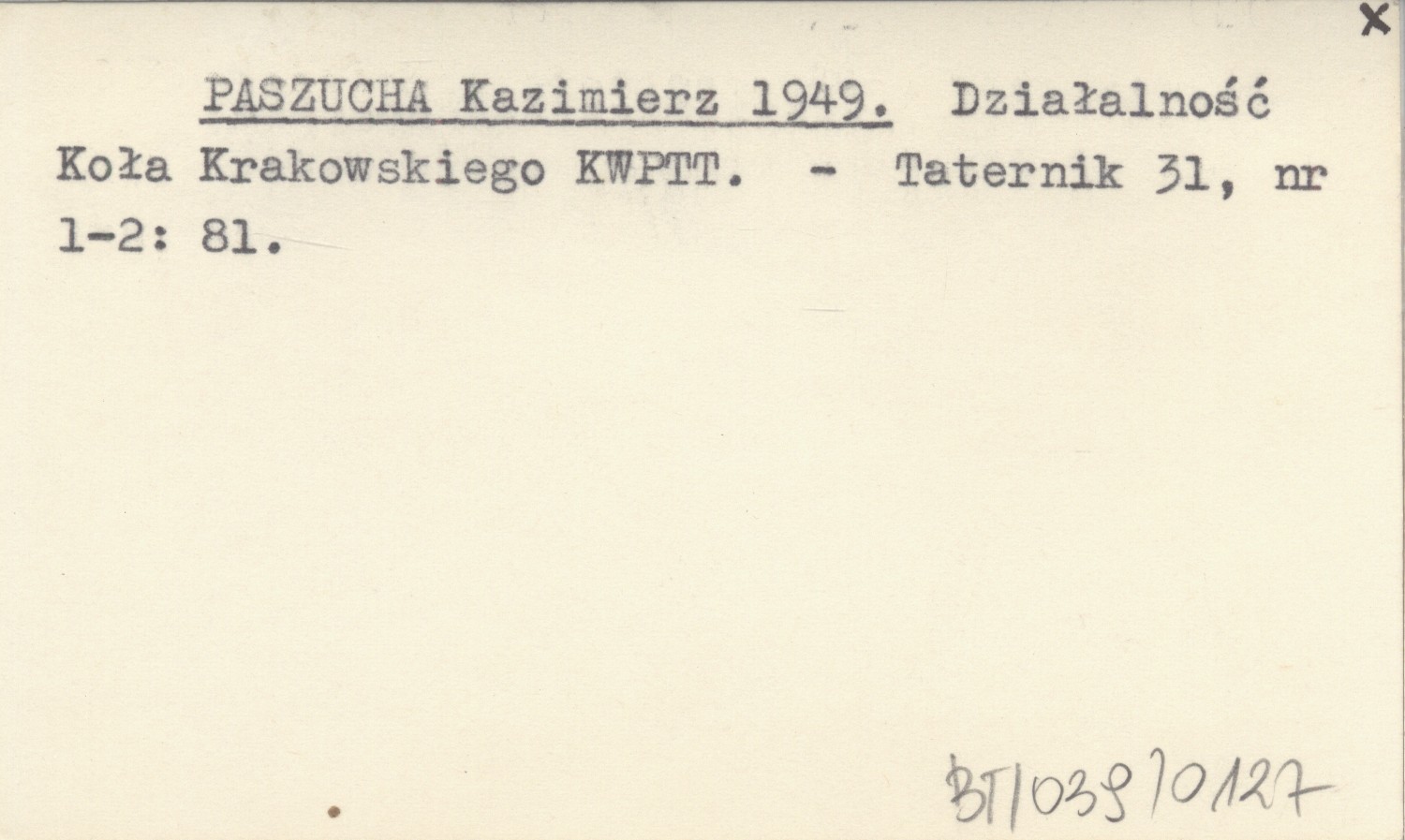 PASZUCHA Kazimierz 1949 Działalność Koła Krakowskiego KWPTT.