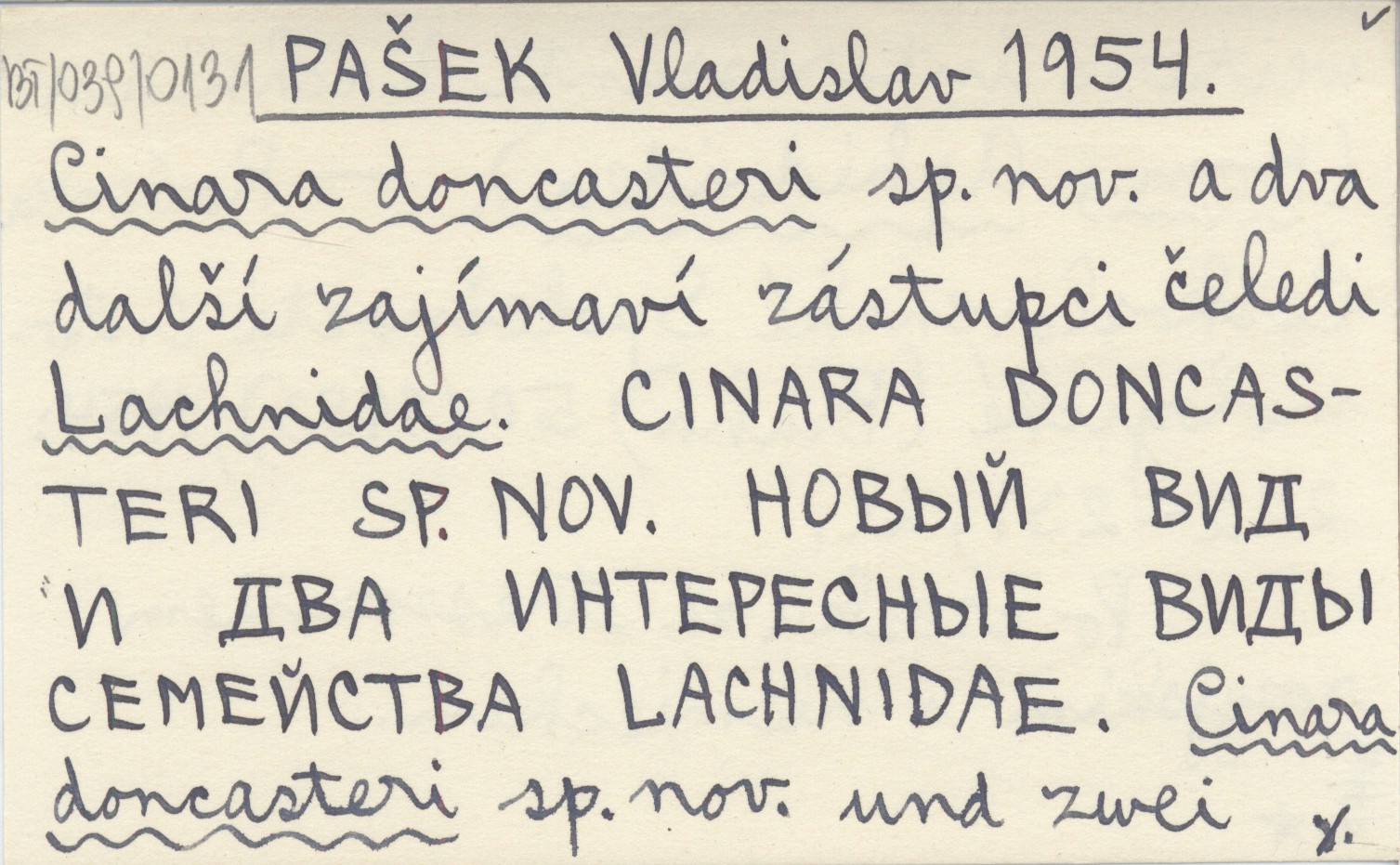 PAŠEK Vladislav 1954 Cinara doncasteri sp. nov. a dva další zajímaví zástupci čeledi Lachnidae. Cinara doncasteri sp. nov. novyj vid i dva interesnye vidy semejstva lachnidae. Cinara doncasteri sp. nov. und zwei weitere interessante Lachniden. (Hom., Aphidoidea).