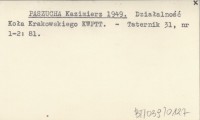 PASZUCHA Kazimierz 1949 Działalność Koła Krakowskiego KWPTT.