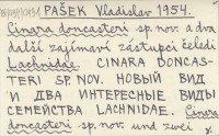 PAŠEK Vladislav 1954 Cinara doncasteri sp. nov. a dva další zajímaví zástupci čeledi Lachnidae. Cinara doncasteri sp. nov. novyj vid i dva interesnye vidy semejstva lachnidae. Cinara doncasteri sp. nov. und zwei weitere interessante Lachniden. (Hom., Aphidoidea).
