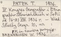 PATEK T. 1936 IV Kongres Geografów i Etnografów Słowiańskich w Sofii od 16-21 VIII 1936 r.