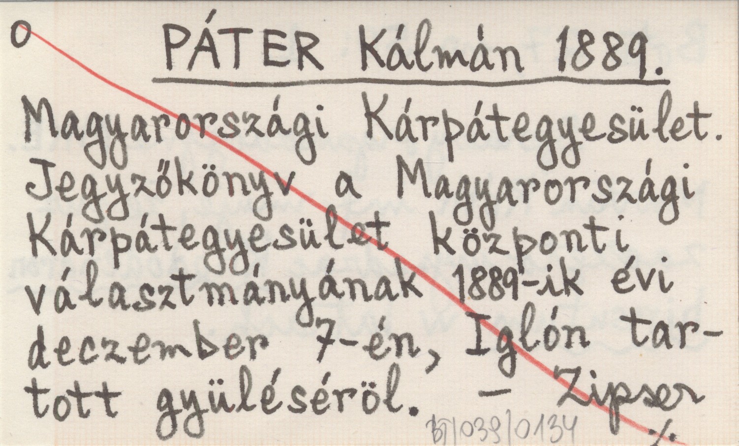 PÁTER Kálmán 1889 Magyarországi Kárpáteguesület. Jegyzőkönyv a Magyarországi Kárpáteguesület központi választmányának 1889-ik évi deczember 7-én, Iglón tartott gyüléséröl.