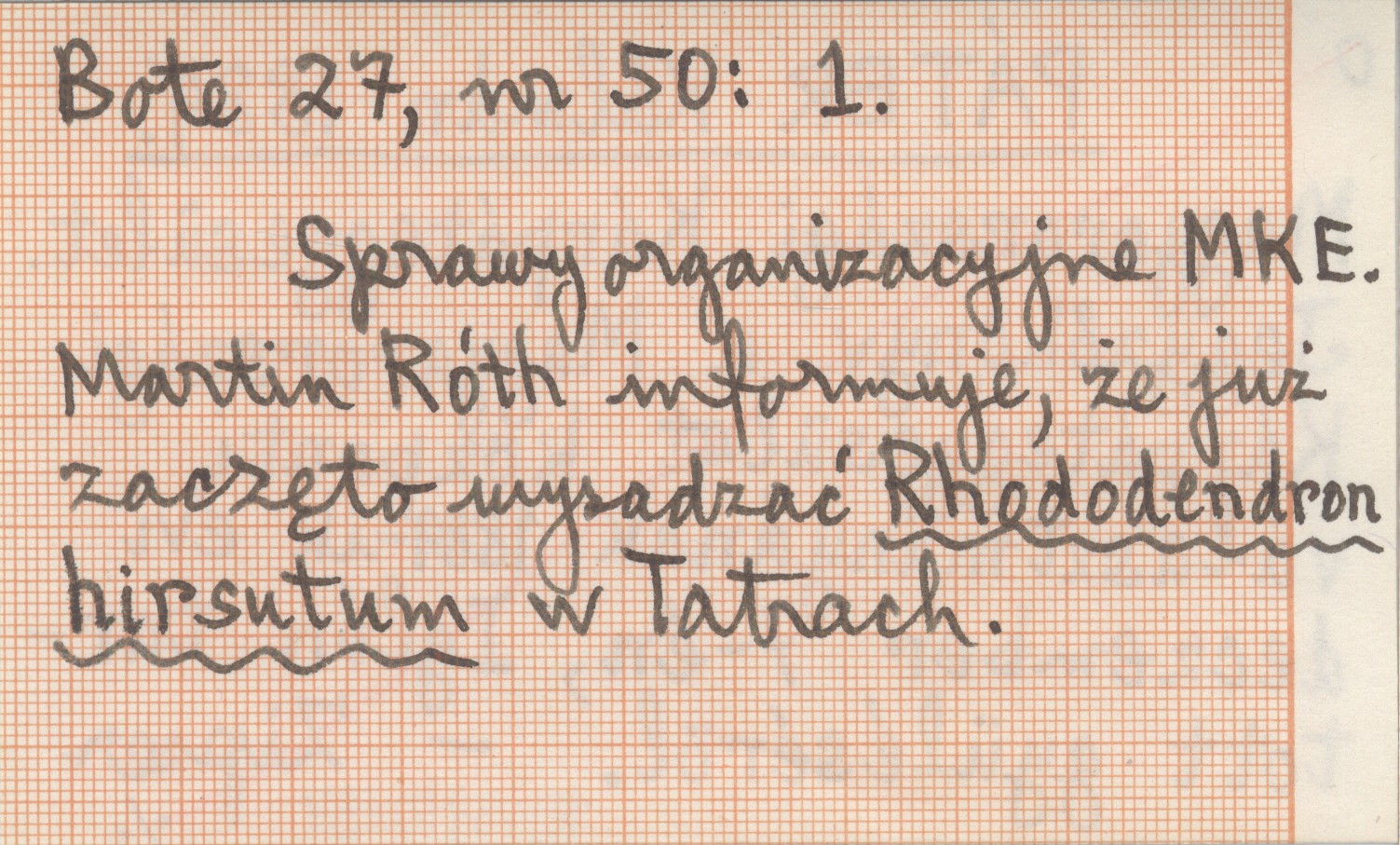 Zipser Bote, 27, nr 50: 1. Sprawy organizacyjne MKE. Martin Róth informuje, że już zaczęto wysadzać Rhododendron hirsutum w Tatrach.