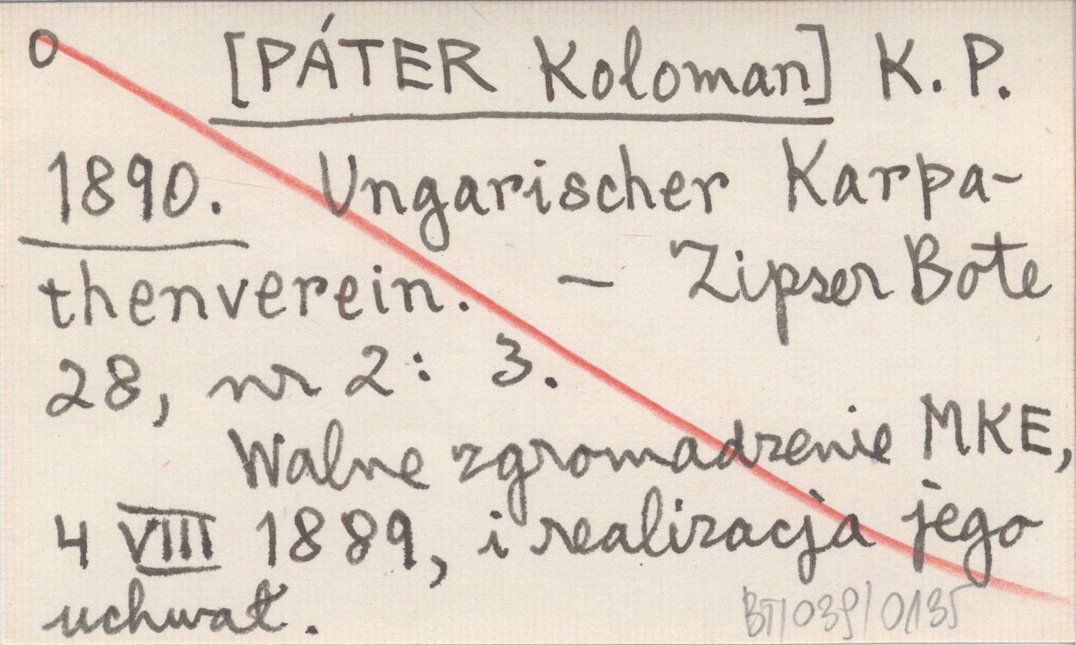 K. P. [PÁTER Koloman] 1890 Ungarischer Karpathenverein.