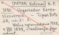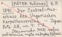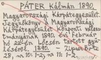 PÁTER Kálmán 1890 Jegyzőkönyv a Magyarországi Kárpáteguesület központi választmányának 1890. évi junius 7-én, Poprádon tartott gyüléséröl.