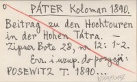 PÁTER Koloman 1890 Beitrag zu den Hochtouren in der Hohen Tátra.
