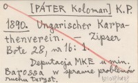 PÁTER Kálmán 1890 Magyarországi Kárpáteguesület. Jegyzőkönyv a Magyarországi Kárpáteguesület központi választmányának 1890 évi február hó 22-én, Lőcsén tartott gyüléséröl.