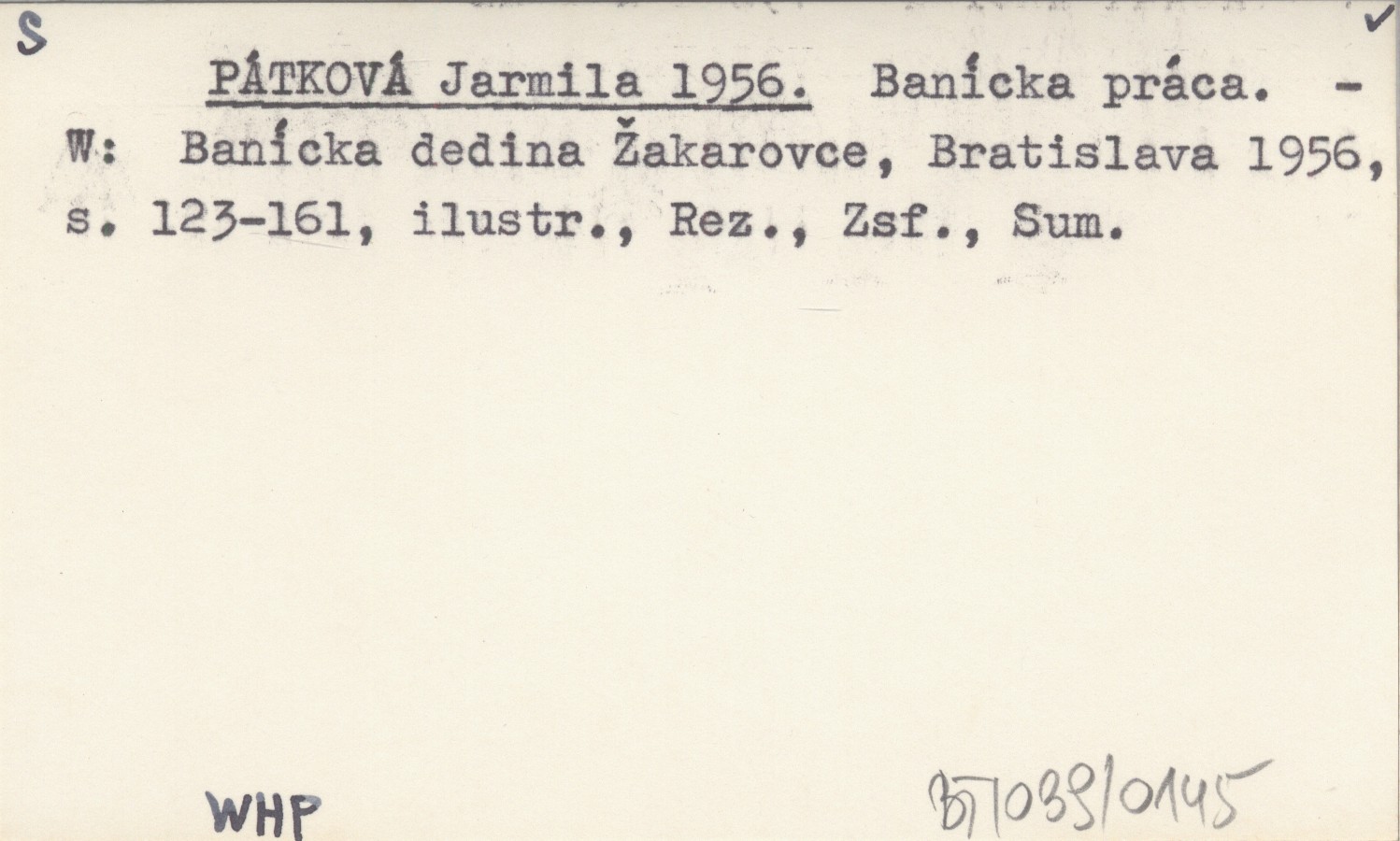 Banícka dedina Žakarovce. Bratislava , S. 123-161, il., Rez., Zsf., Sum.