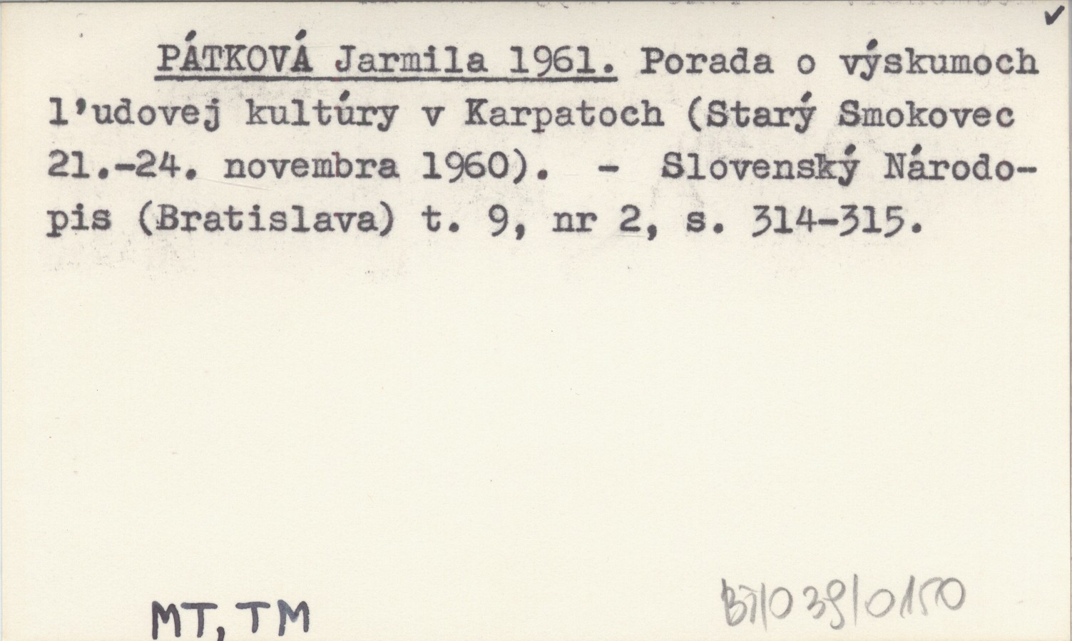 PÁTKOVÁ Jarmila 1961 Porada o vęskumoch ”udovej kultúry v Karpatoch (Starę Smokovec 21.-24. novembra 1960).