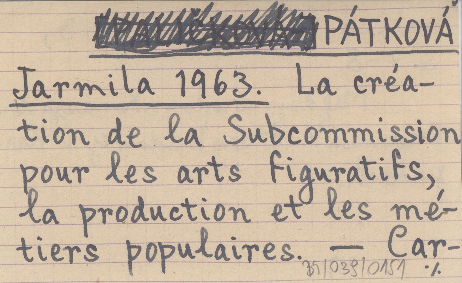 PÁTKOVÁ Jarmila 1963 La création de la Subcommission pour les arts figuratifs, la production et les métiers populaires.