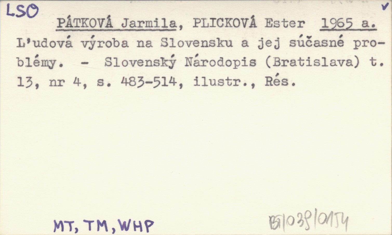 PÁTKOVÁ Jarmila PLICKOVÁ, Ester. ; 1965 a ¥udová výroba na Slovensku a jej súèasné problémy.