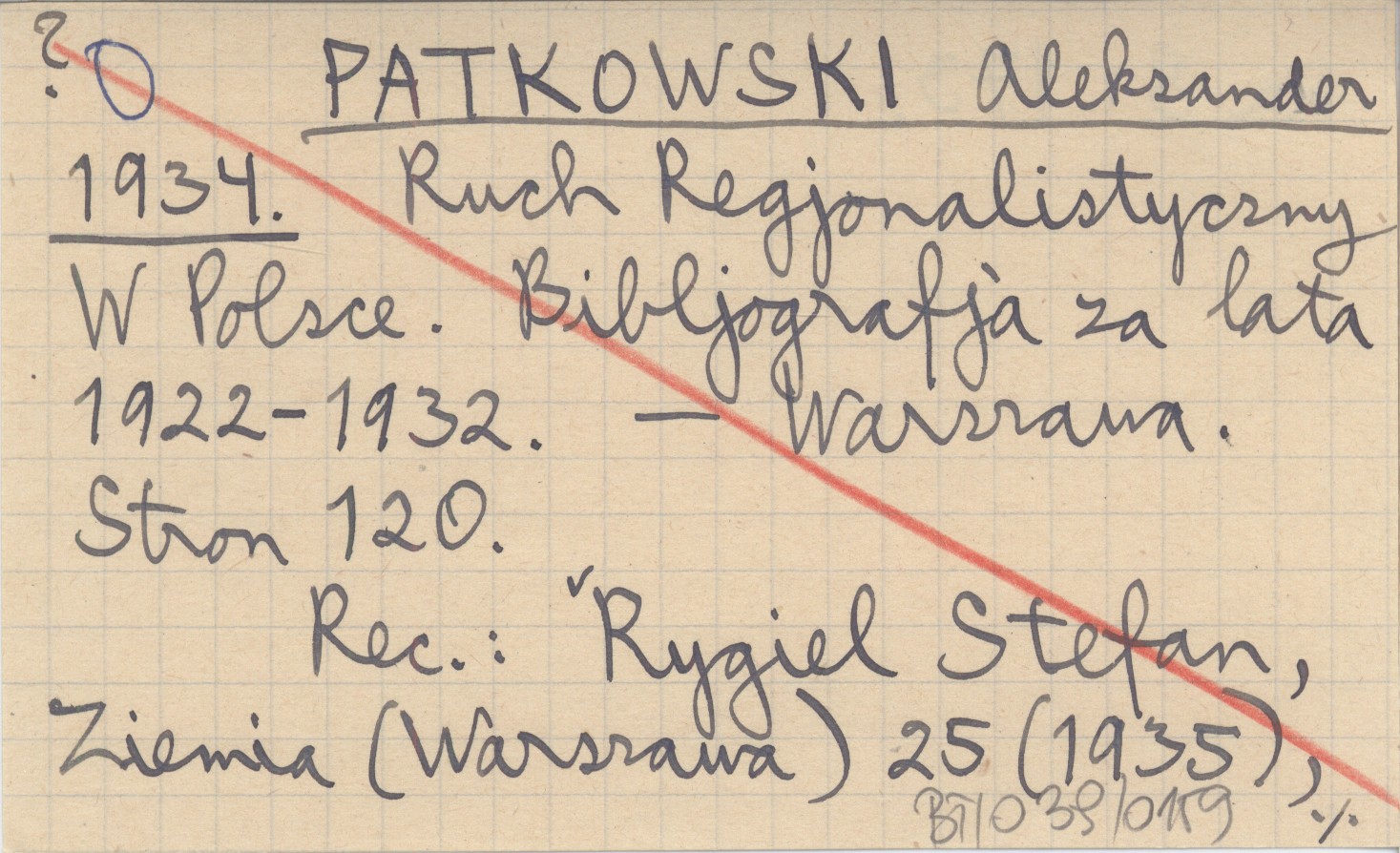 PATKOWSKI Aleksander 1934 Ruch Regjonalistyczny w Polsce. Bibljografja za lata 1922-1932.