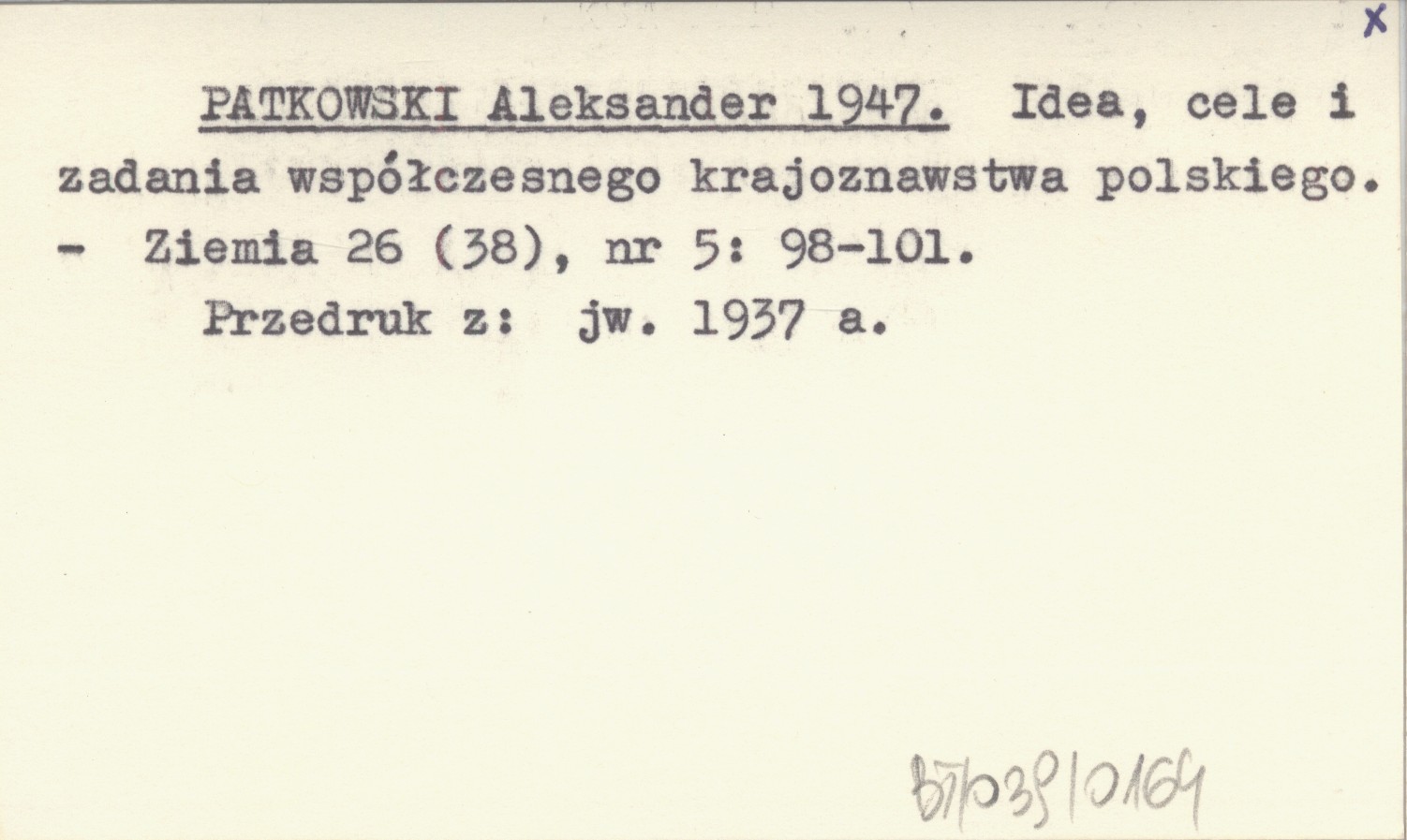 PATKOWSKI Aleksander 1947 Idea, cele i zadania współczesnego krajoznawstwa polskiego.