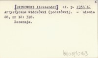 al. p. [PATKOWSKI Aleksander] 1938 a Artystyczne widokówki (pocztówki).