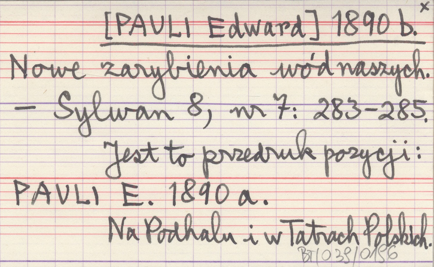 [PAULI Edward] 1890 b Nowe zarybienia wód naszych.