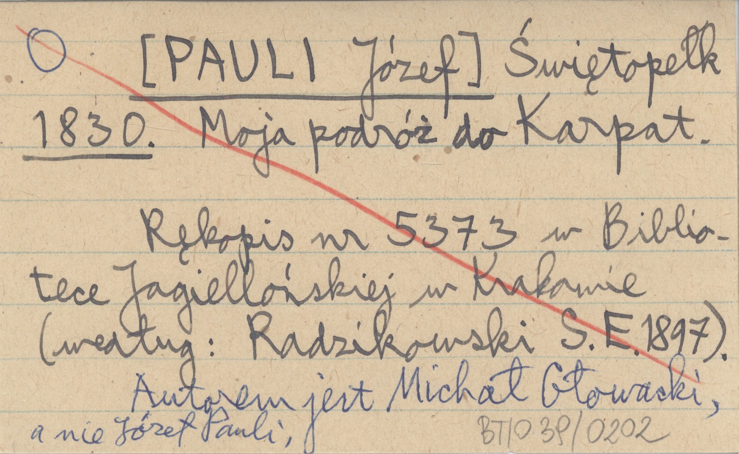 , Rękopis nr 5373 w Bibliotece Jagiellońskiej w Krakowie (według: RADZIKOWSKI S. E. 1897). Autorem jest Michał Głowacki, a nie Józef Pauli.
