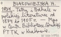 BIAŁOWIEJSKA H. 1934... Tatry i Podhale w polskiej literaturze od 1874 do 1905 r.