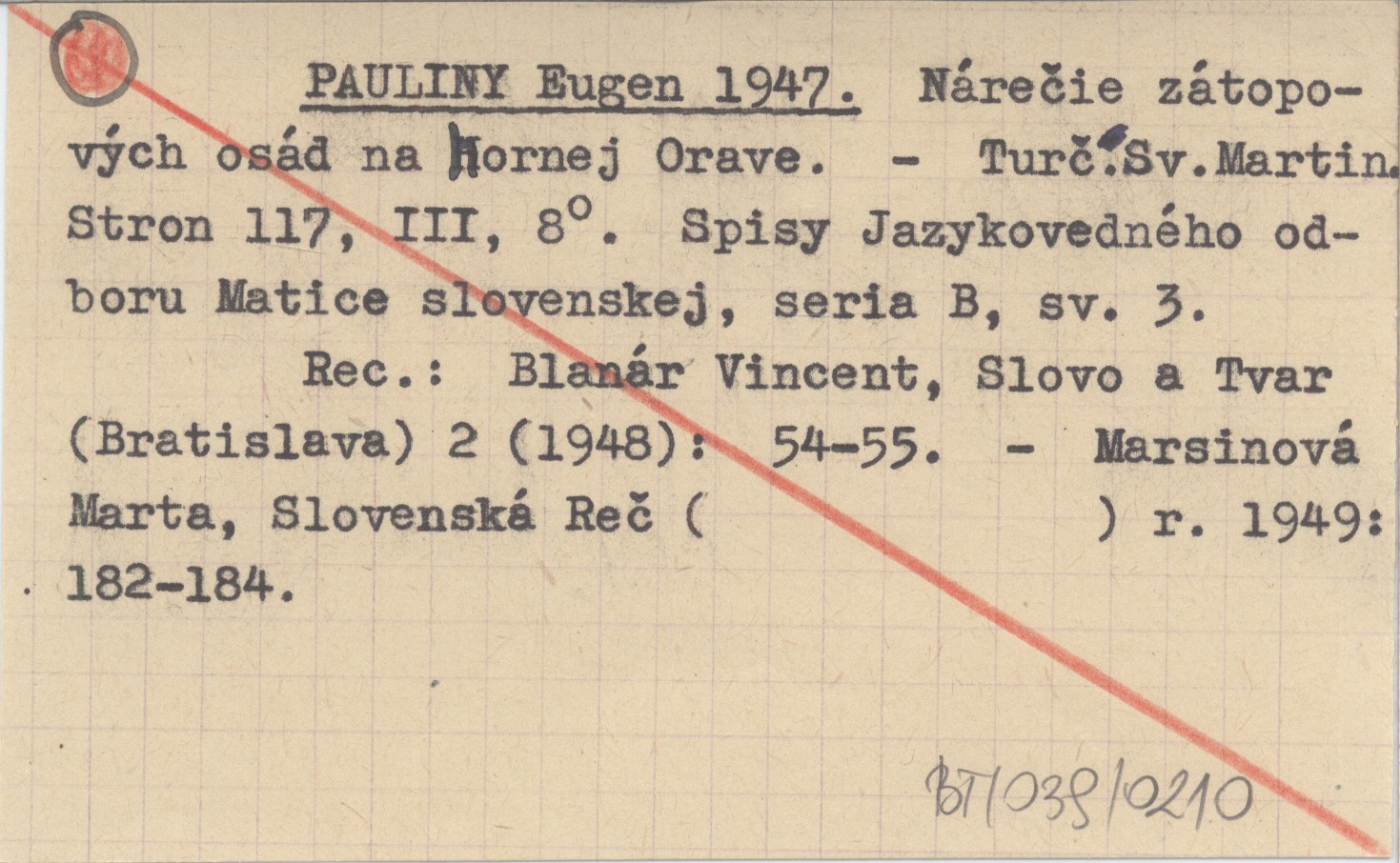 Turčiansky Svätý Martin (Spisy Jazykovedného Odboru Matice Slovenskej, ser. B, t. 3) , 117, [3] s., 8°. REC: BLANÁR V., Slovo a tvar (Bratislava) 2 (1948): 54-55 ; BLANÁR V. 1950: 56-57 ; MARSINOVÁ Marta, Slovenská Reč, r. 1949: 182-184 ;
