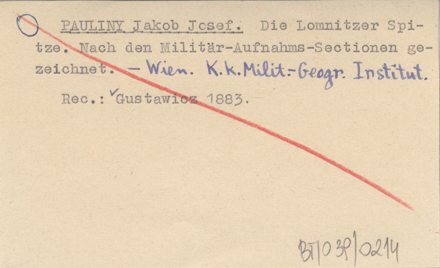 PAULINY Jakob Josef Die Lomnitzer Spitze. Nach den Militär-Aufnahms-Sectionen gezeichnet.
