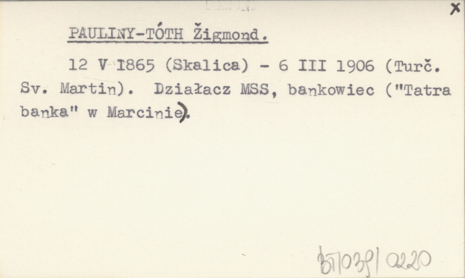 12 V 1865 (Skalica) - 6 III 1906 (Turčiansky Svätý Martin). Działacz MSS, bankowiec ("Tatra banka") w Marcinie).