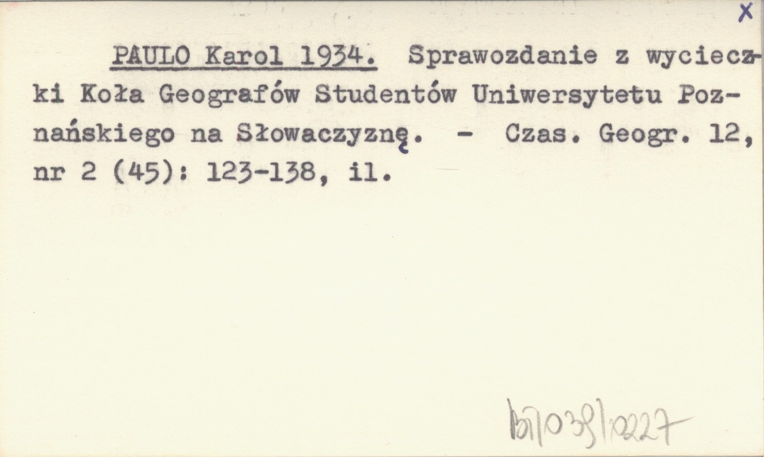 PAULO Karol 1934 Sprawozdanie z wycieczki Koła Geografów Studentów Uniwersytetu Poznańskiego na Słowaczyznę.